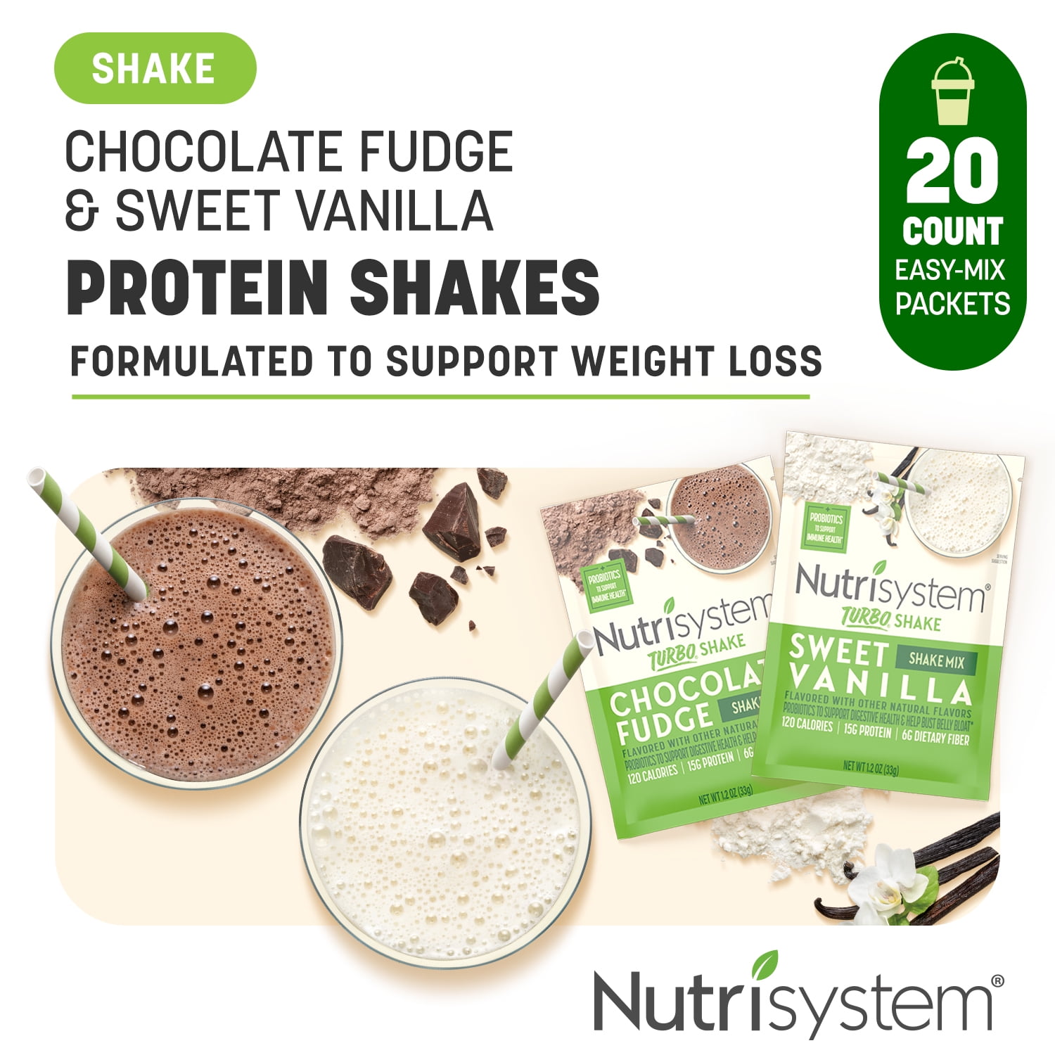 Nutrisystem Sweet Vanilla Chocolate Fudge Protein Probiotic Shake Mix Support Your Weight Loss Plan With On The Go Shakes 20 Servings Walmart Com